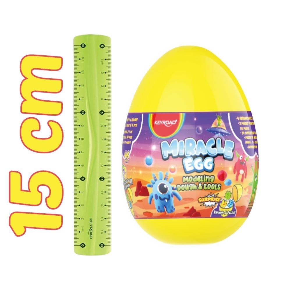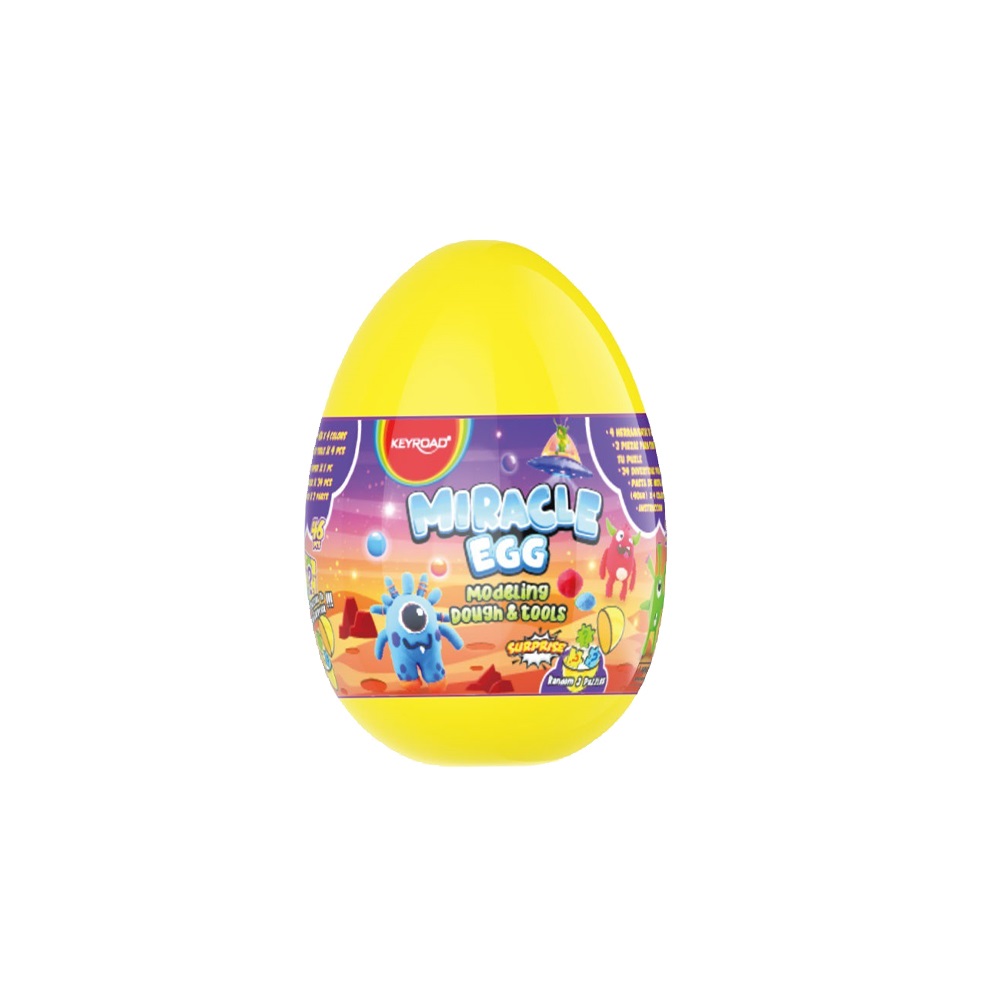 - 3. Csodatojás – DIY modellező gyurma: gyurma 40 g x 4 szín, vágó és henger eszköz 4 db, használati útmutató 1 db, matrica 34 db, puzzle részlet 3 db
