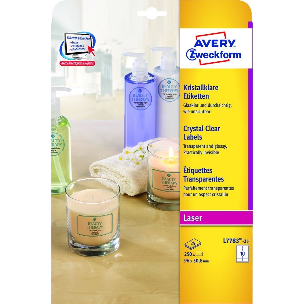 Tökéletes megoldást nyújtanak az üveg, műanyag és fém tárgyak, valamint egyéb fényes felületek felcímkézésére. A címkék olaj-, szennyeződés- és hőállóak (-20°C és +80°C között), cseppállóak és szakadásbiztosak. Tervezze meg és nyomtassa ki címkéit gyorsan és egyszerűen – ingyenes szoftverünkért és sablonjainkért látogasson el a http://www.avery.hu/templates-software/ weboldalra vagy használja a Microsoft® Office csomagokba beépített sablonjainkat! Kifejezetten lézer és színes lézer nyomtatókhoz fejlesztve.