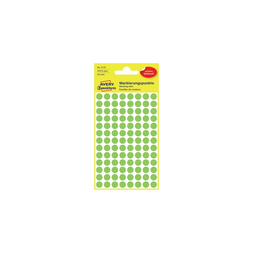Etikett címke, o8mm, jelölésre, neon 104 címke/ív, 4 ív/doboz, Avery zöld