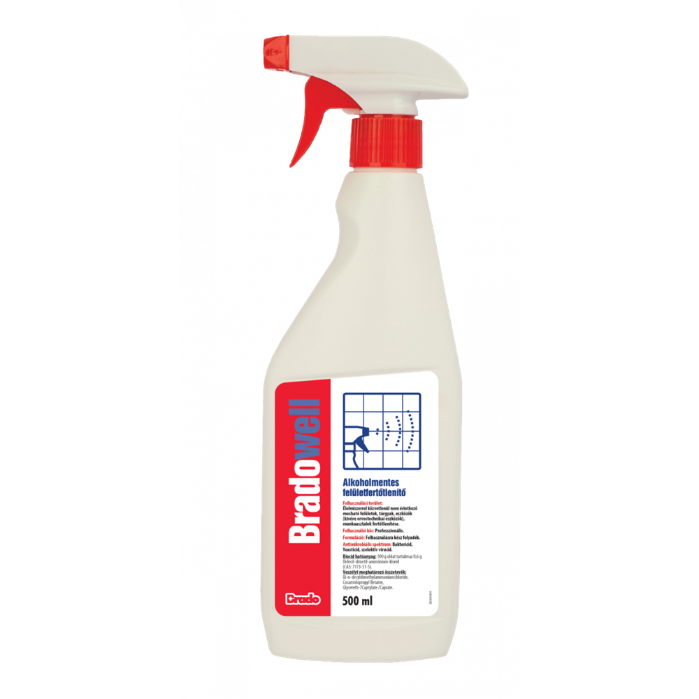 Felületfertőtlenítő antibakteriális tisztító folyadék szórófejes 500 ml Bradowell termék alkalmazásakor ügyeljen a biztonságra!