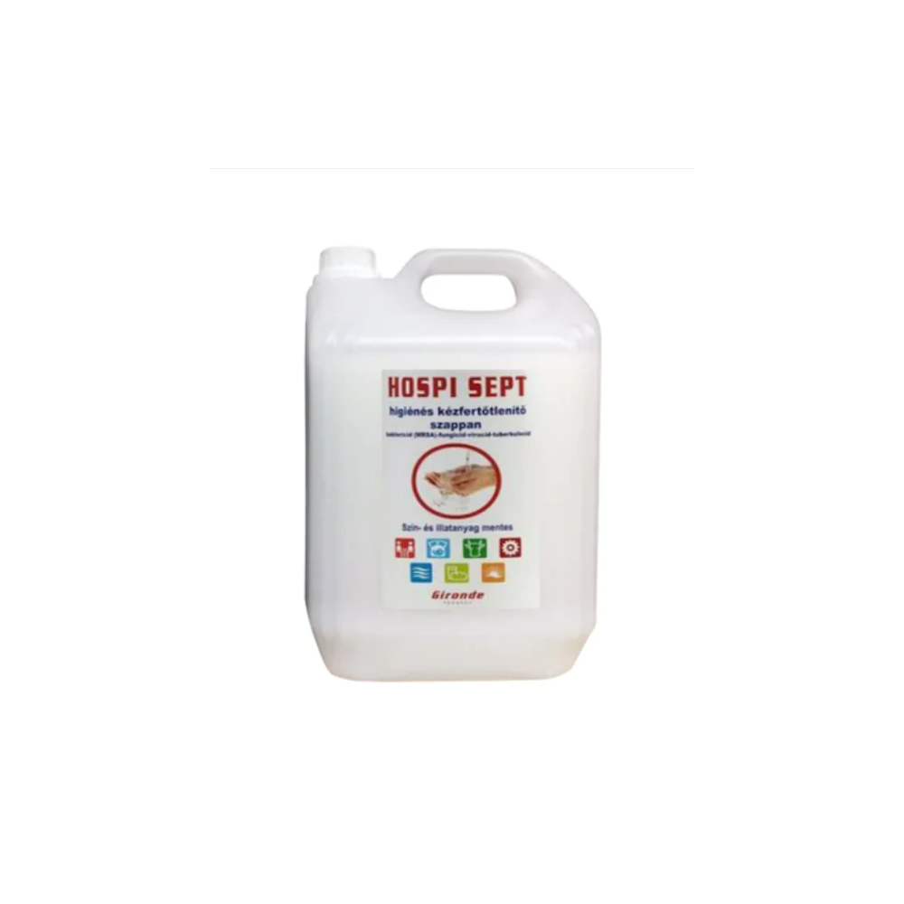 Széles hatásspektrummal rendelkező fertőtlenítős folyékony szappan Folyékony szappan fertőtlenítő hatással, 5000 ml Hospi-Sept termék alkalmazásakor ügyeljen a biztonságra!