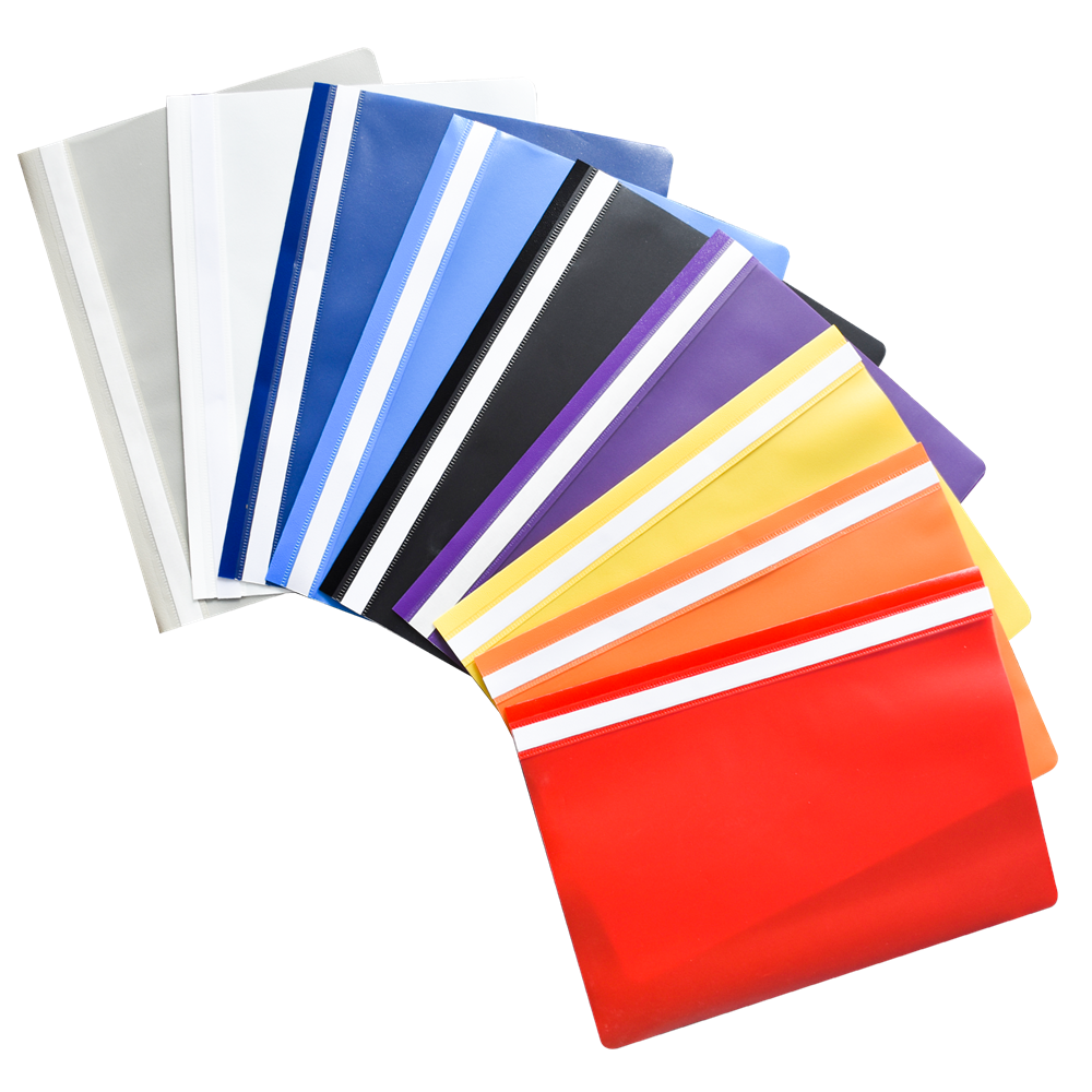 Gyorslefűző a lyukasztott lapok rendszerezésére és védelmére. Fém lefűző szerkezet műanyag leszorítóval. Az áttetsző, nem tükröződő borító látni engedi a dokumentum első oldalát. Hosszú címketartó, a címke kivételét ill. behelyezését segítő kivágással. Katalóguskód: 22781