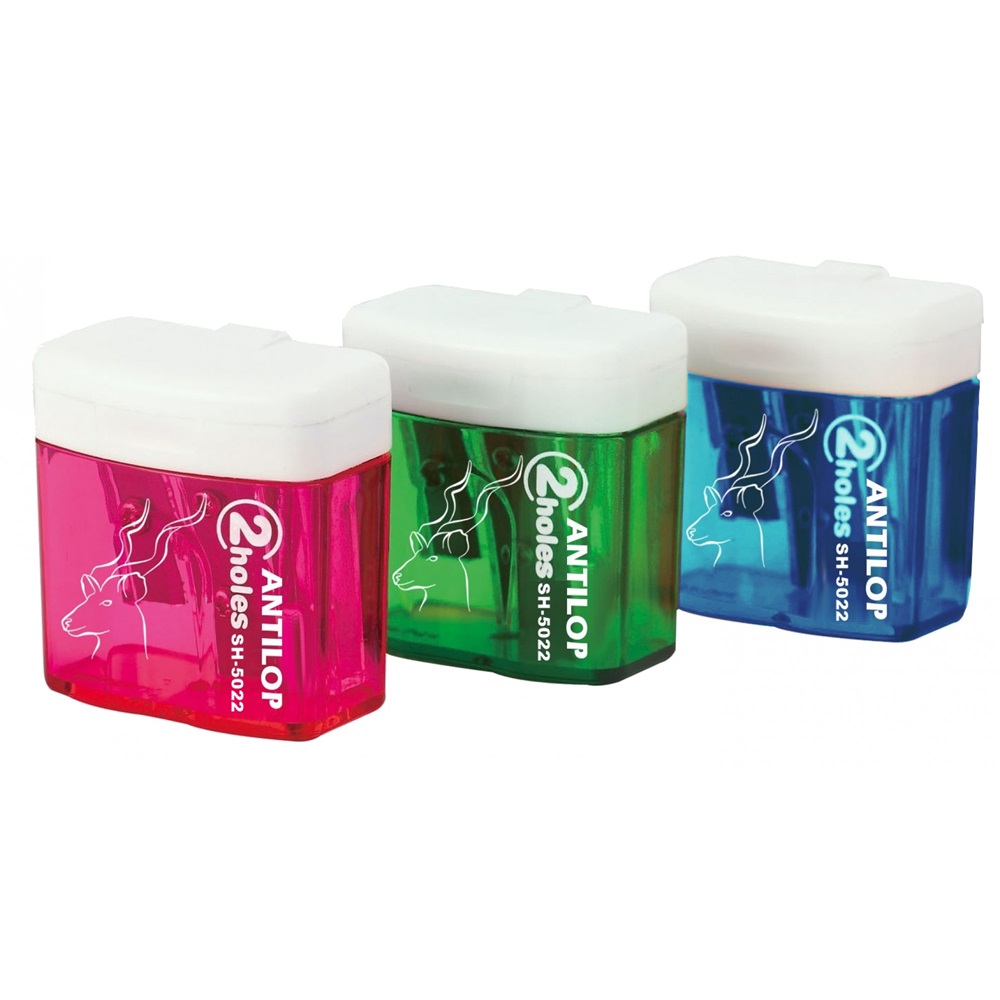 Antilop SH5022 műanyag 2 lyukú tartályos hegyező karton displayben vegyes csomagolással.