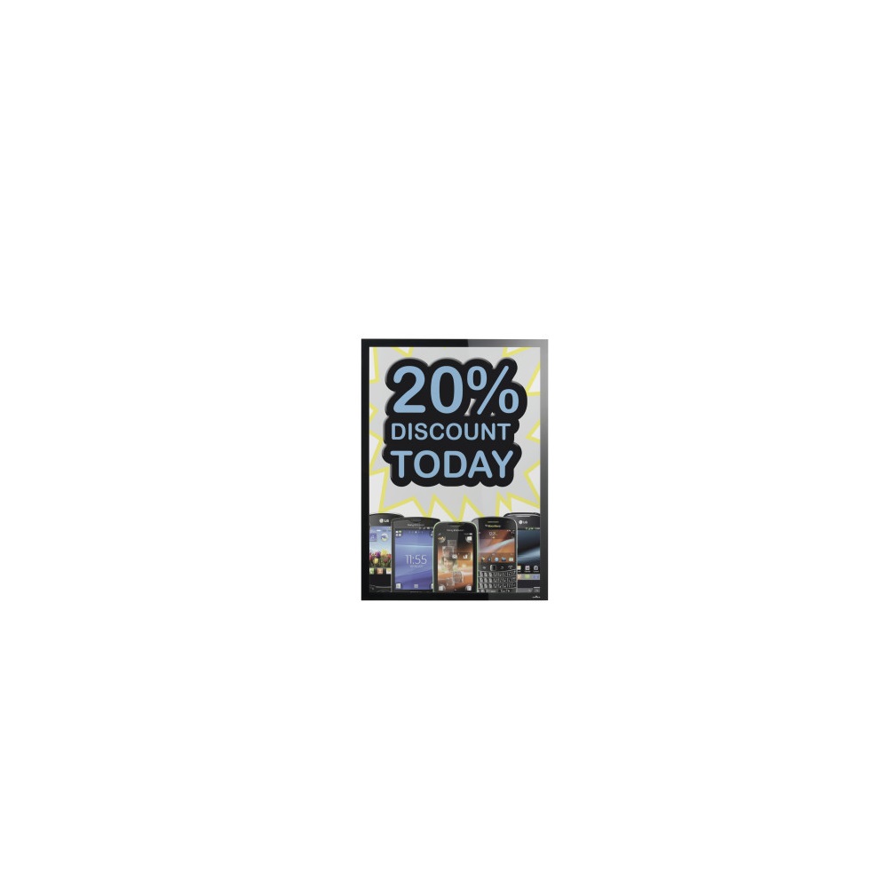 • Elektrosztatikusan tapadó keret, mely kimondottan olyan kirakati ablakokra lett tervezve, melyeket tűző napsütés ér
