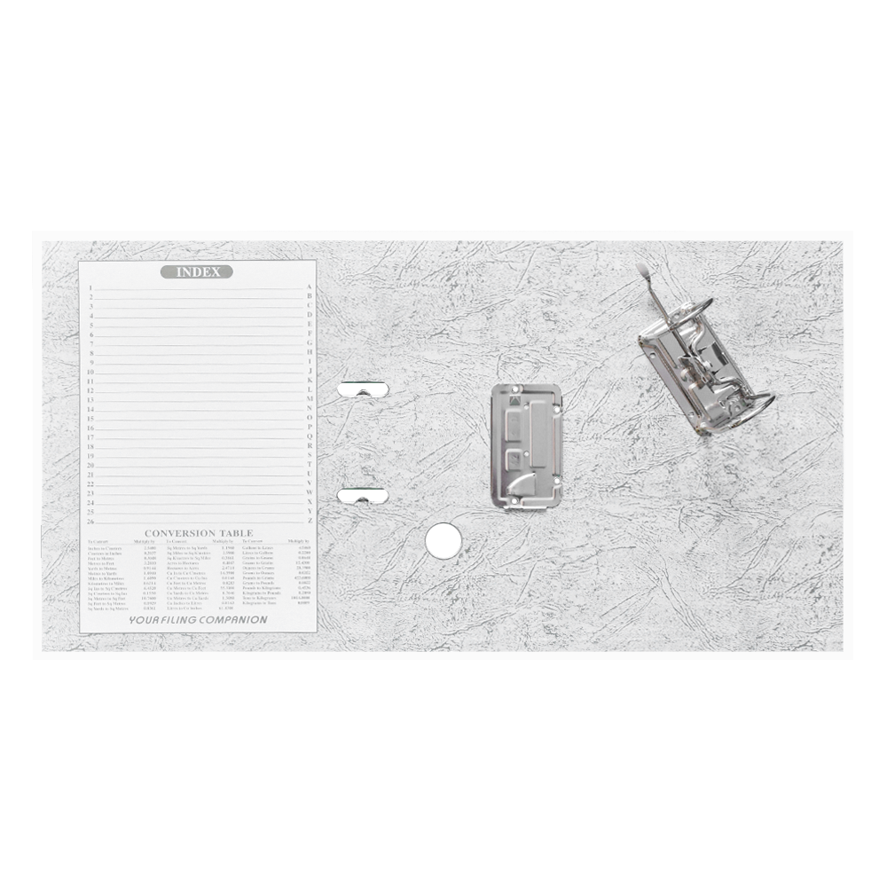 Emelőkaros iratrendező általános használatra. Kívül PP, belül fehér karton borítással, kihúzólyukkal. Cserélhető gerinccímke a feliratozáshoz. Tárolókapacitás 350 lap (A4 80gr.). A terméket lapra szerelve szállítjuk, a mellékelt emelőkaros szerkezet bepattintása gyors és egyszerű, 5 másodperc alatt elvégezhető és iratrendezőnk máris használatra kész! Katalóguskód: 12054