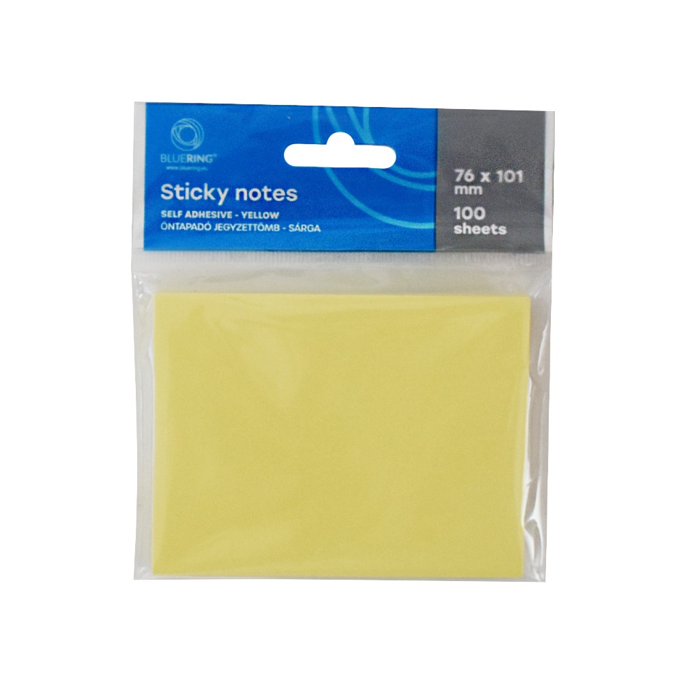 Jegyzettömb öntapadó, 101x76mm, 100lap, Bluering® , sárga