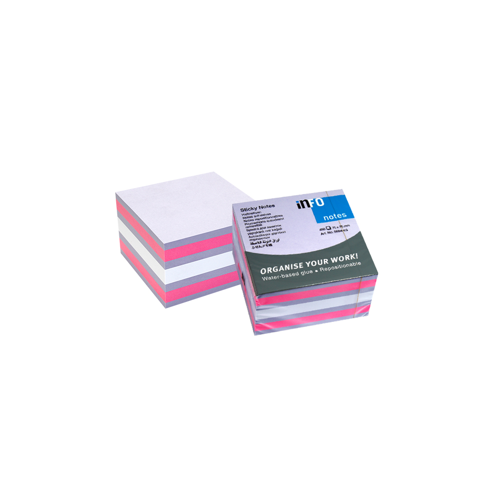 Jegyzettömb öntapadó, 75x75mm, 450lap, Info Notes, brilliant mix, lila, rózsaszín, fehér