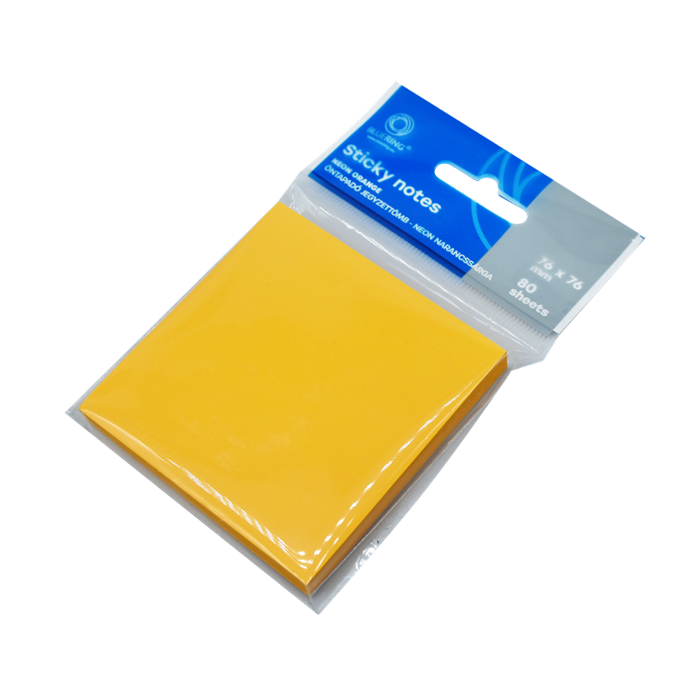 Jegyzettömb öntapadó, 76x76mm, 80lap, Bluering® , neon narancs