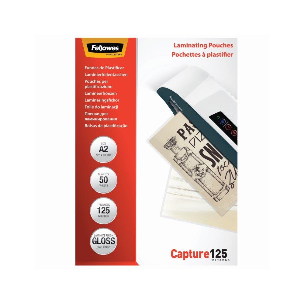 Lamináló fólia, A2, 125 mikron, fényes, 50 db/doboz, Fellowes®