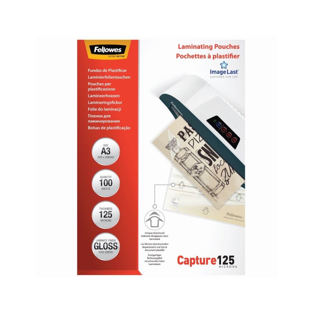 Lamináló fólia, A3, 125 mikron, fényes, 100 db/doboz, Fellowes®