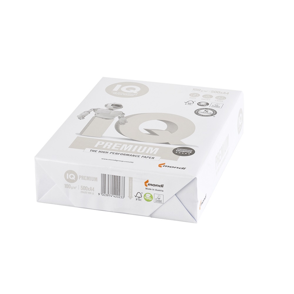 Másolópapír A4, 100g, IQ Premium 500ív/csomag, 4csom/doboz,