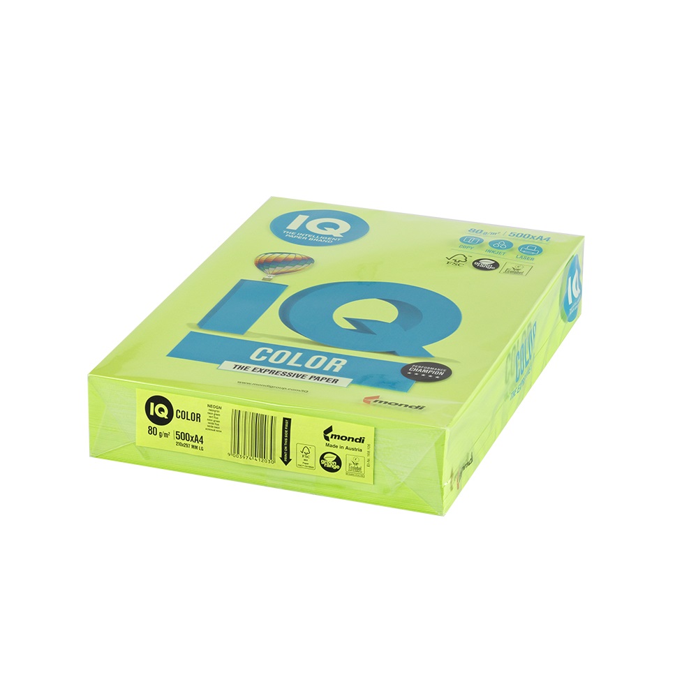 Másolópapír, színes, A4, 80g. IQ 500ív/csomag, neon zöld