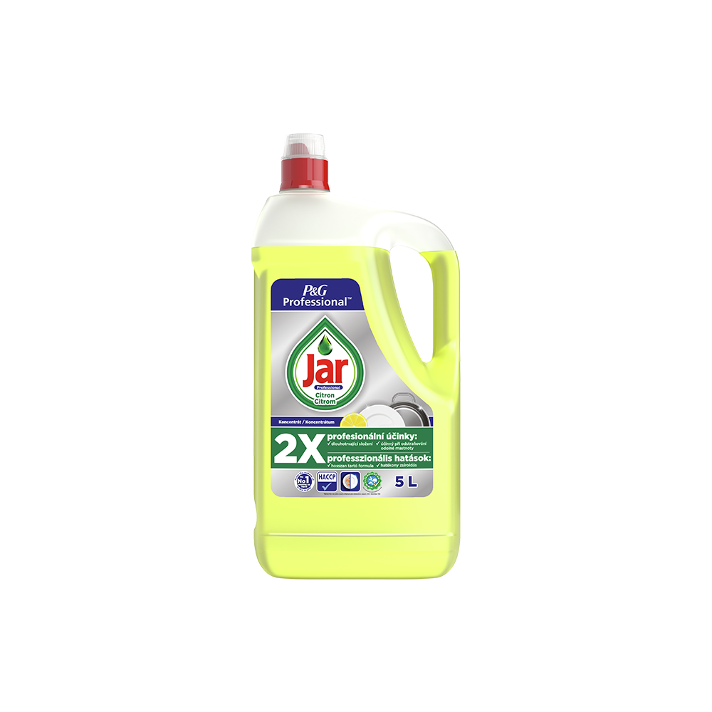 A Jar Professional kézi mosogatószer alkalmas minden típusú edény mosogatására, a rozsdamentes acéltól a porcelánig. Kiváló zsíroldó hatással rendelkezik, amely hatékonyan eltávolítja a zsírokat és az élelmiszer maradványokat az edényekről, tányérokról, evőeszközről és egyéb konyhai eszközökről. Kellemes citrom illattal. Gazdaságos 5L kiszerelésben.