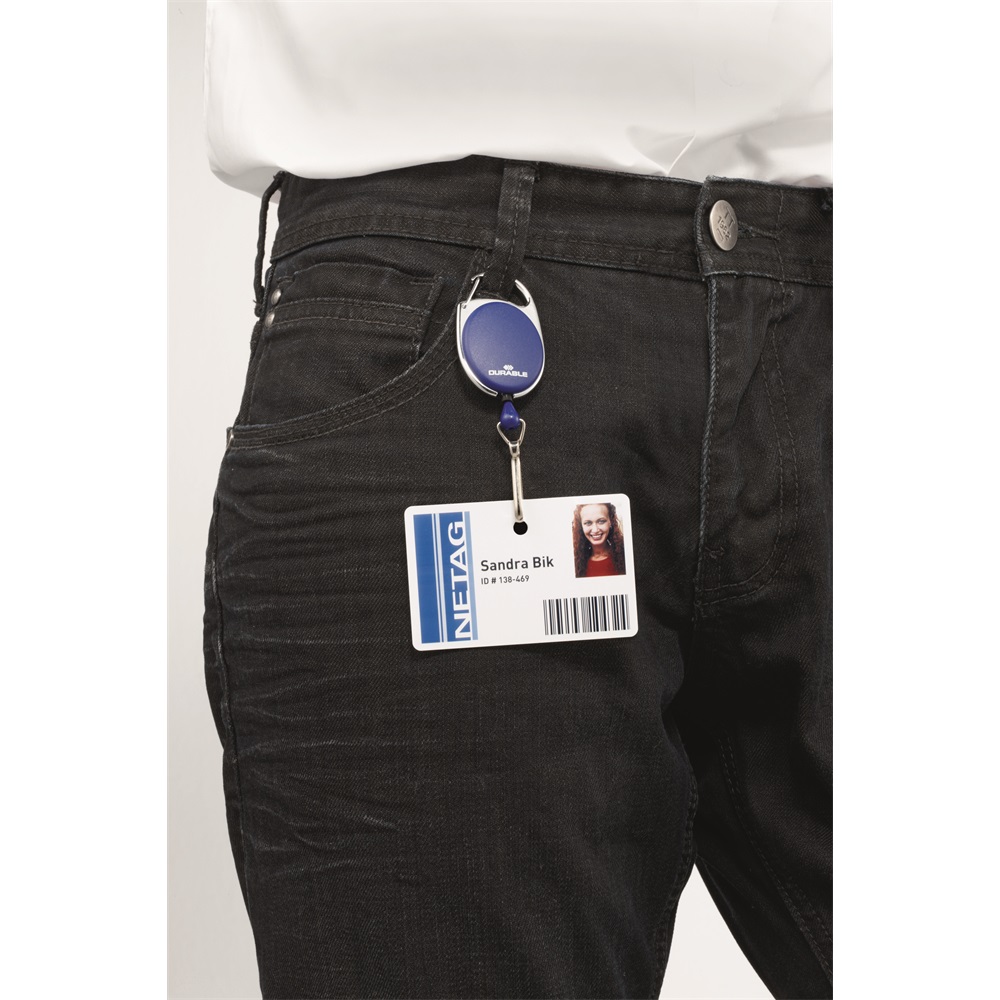 Ovális, kihúzható névkitűzőtartó, fém klippel, széles színválasztékban. A biztonsági kártya mindig kéznél van. Minden lyukasztott DURABLE névtartóhoz használható. Karabineres rögzítéssel.