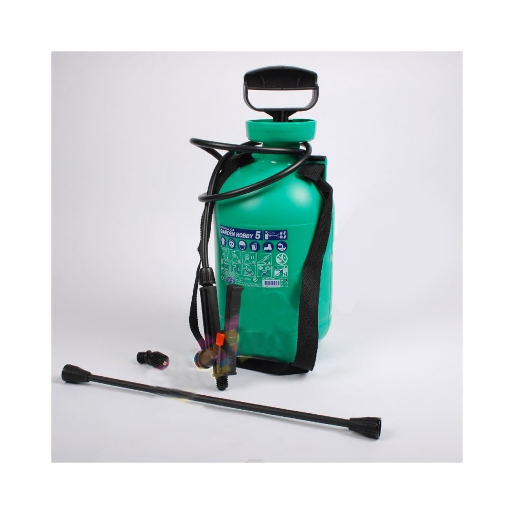 Garden Hobby 5 literes túlnyomásos permetező nyéllel, vállpánttal, állítható fejjel. Növények permetezésére, frissítésére,vegyzerszórásra is használható.