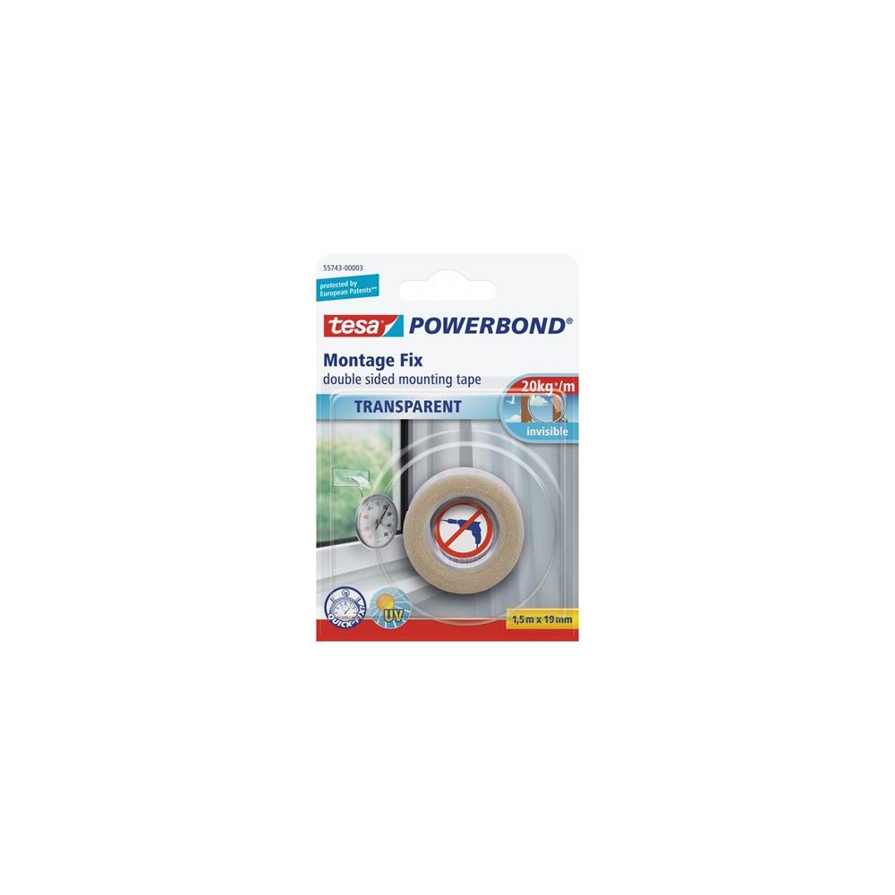 Ragasztószalag kétoldalas, rögzítószalag 19mmX1,5m PowerBOND Tesa átlátszó