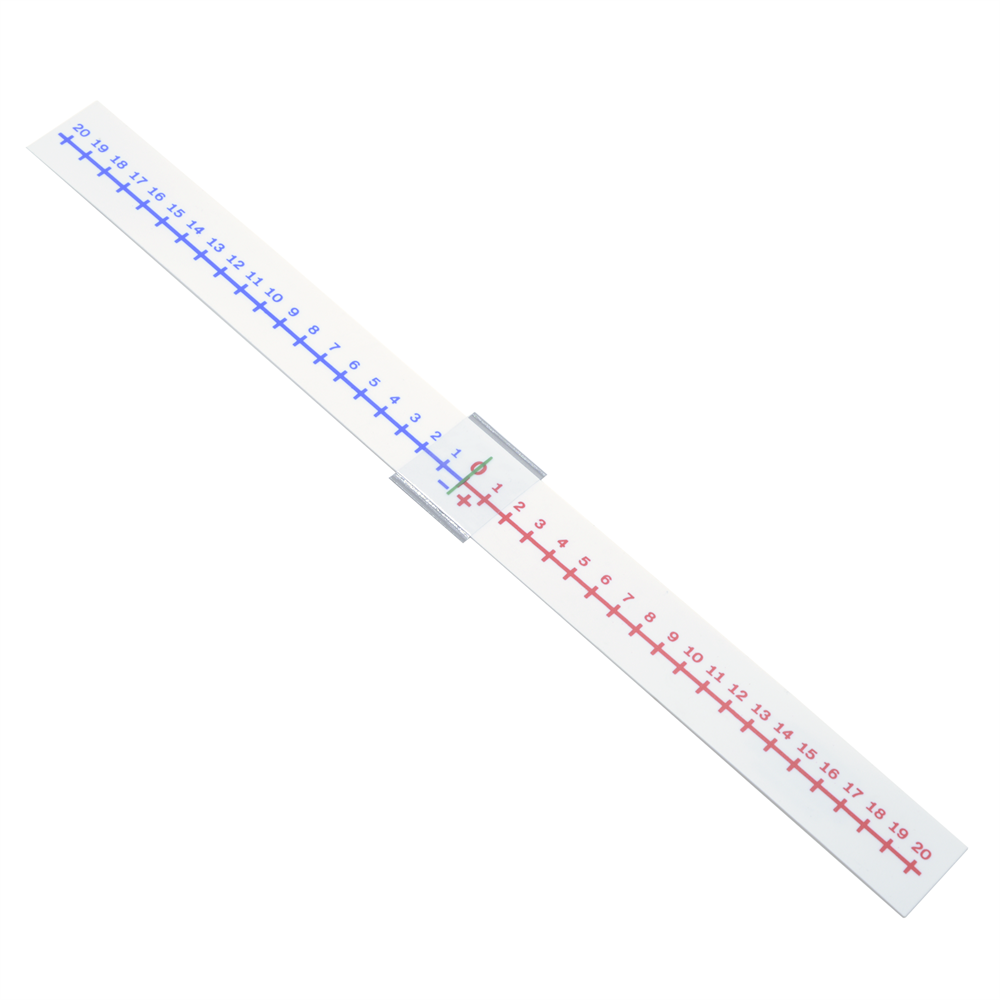 Műanyag számegyenes + (piros) – (kék) kiosztással. Katalóguskód: 34489