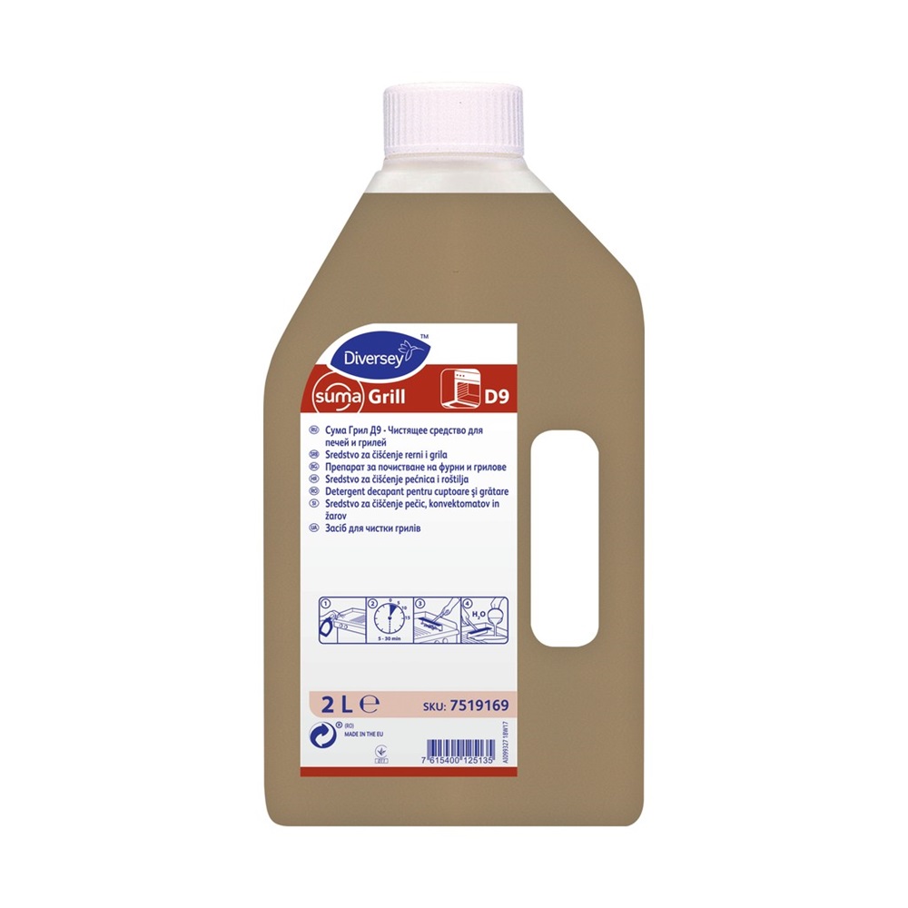 A Suma Grill D9 erősen lúgos tisztítószer, amely alkalmas az erősen szennyezett sütők, grillezők vagy salamanderek rendszeres tisztítására. A lúgos felületaktív anyagok és oldószerek keveréke eltávolítja az erősen elszenesedett szennyeződéseket. Vízzel hígítva a termék az olajsütők tisztítására is alkalmas.