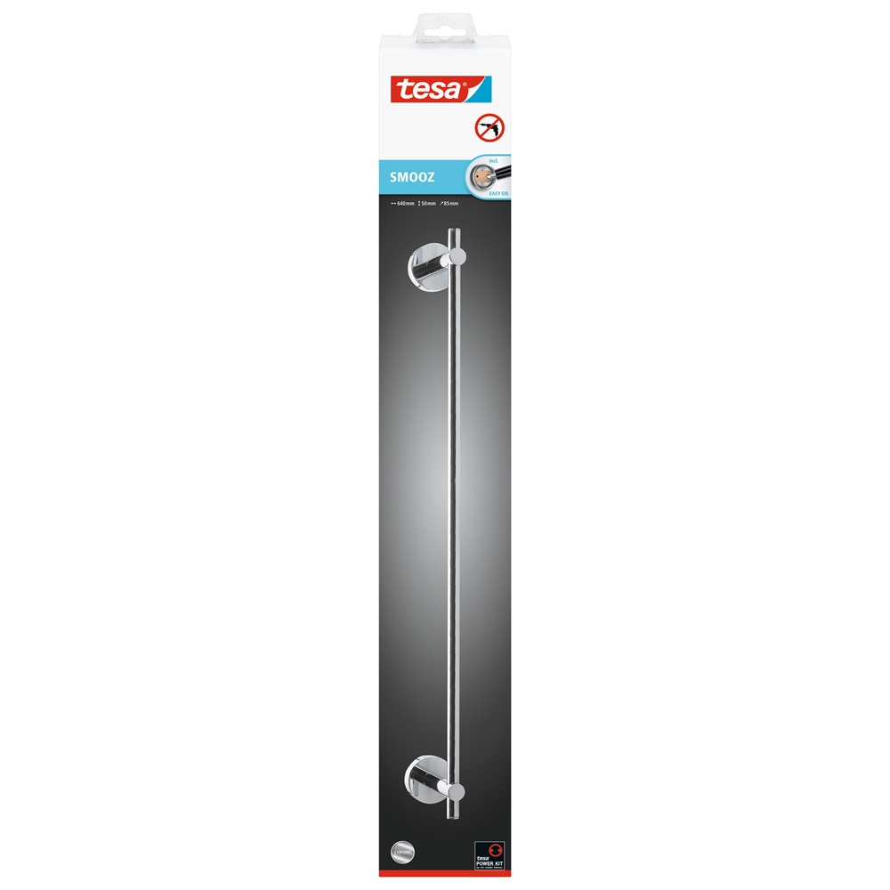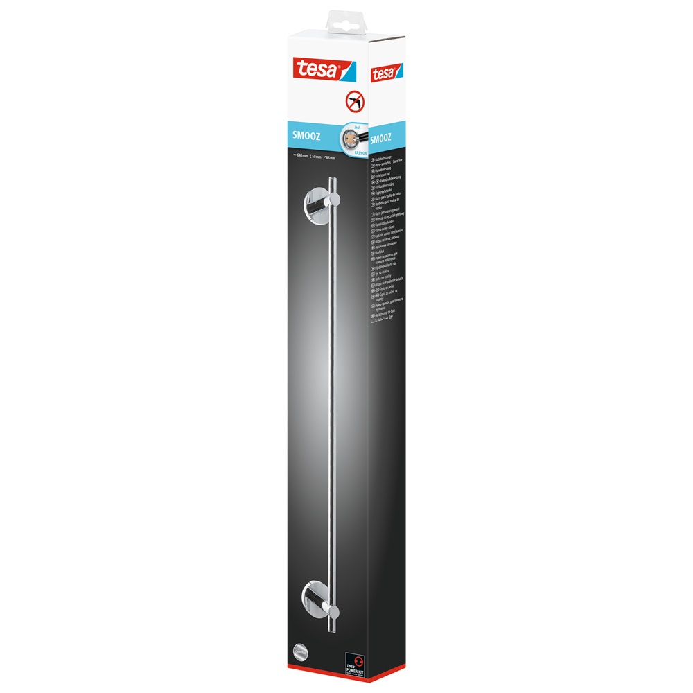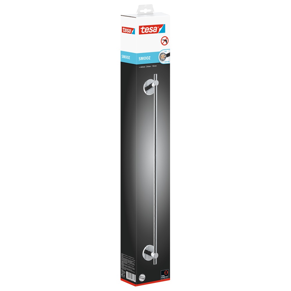 Elegáns megjelenésének köszönhetően a ragasztós rögzítésű tesa® SMOOZ törölközőtartó rúd vonzó, ráadásul könnyen felszerelhető fürdőszobai kiegészítő. Nincs szükség fúrásra, a felületek épek maradnak. A rúd bármikor levehető ragasztómaradványok nélkül, és egy új BK20-2 adapterrel áttehető egy másik helyre.