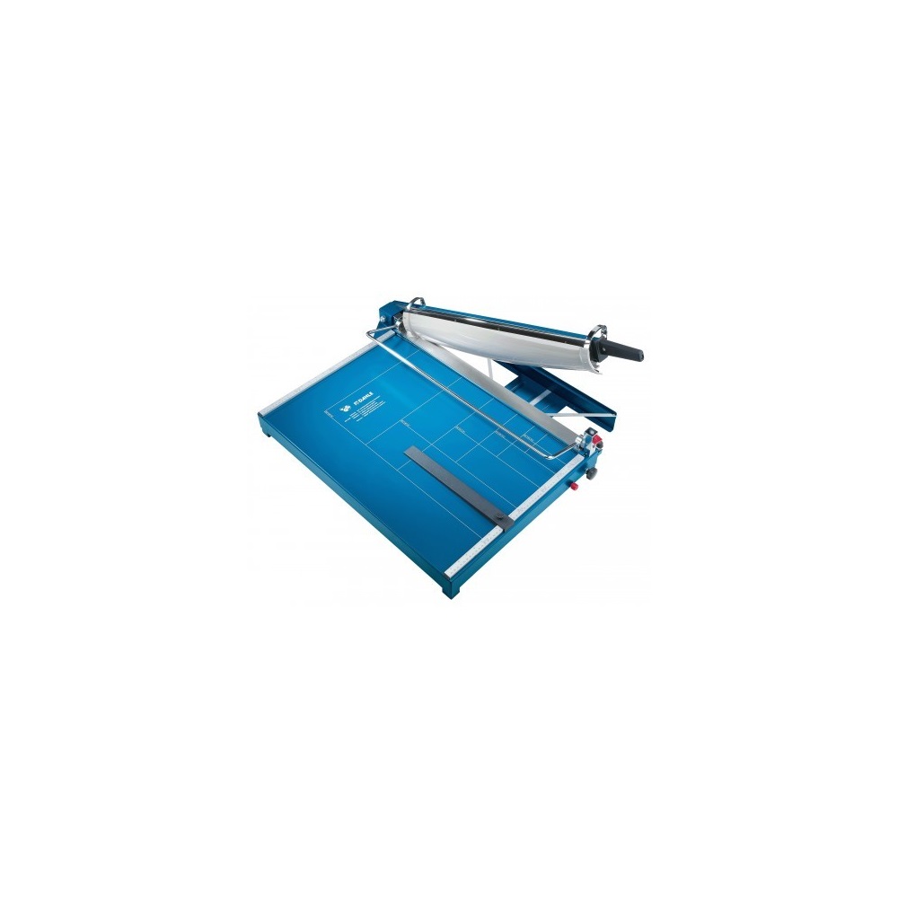DAHLE 567 karos papírvágó gép, vágási szélessége 550 mm. Vágási kapacitás 35 db A4-es formátumú lap. A kés automatikus élvédője garantálja a munkabiztonságot. Ajánlott igényesebb munkakörökben, magas követelményekkel a minőségre és a feldolgozott mennyiségre. formátum: A3 (a vágás hossza 550 mm) a vágóasztal anyaga: acéllemez vágható rétegvastagság: 3,5 mm lapkapacitás: 35 A4/70g/m2 méretek: 600 x 365 mm papírleszorítás: kézi előnyomtatott formátumok: DIN, két derékszögű cm-mérő beállítható külső határoló (lehetővé teszi a vágandó anyag mérését oldalról a vágóasztalon kívül vagy a papírcsíkok vágásának beállítását) része a rögzíthető vonalzó a vágandó anyagot fémkar szorítja le és rögzíti a vágóasztalon rögzíthető derékszög a kés kiváló minőségű Solingen acélból készült a vágóasztal felületét magas hőmérsékleten égetett festék borítja, amely ellenálló kopással vagy karcolással szemben védő elem: az automata elforduló késvédő Katalóguskód: 30083