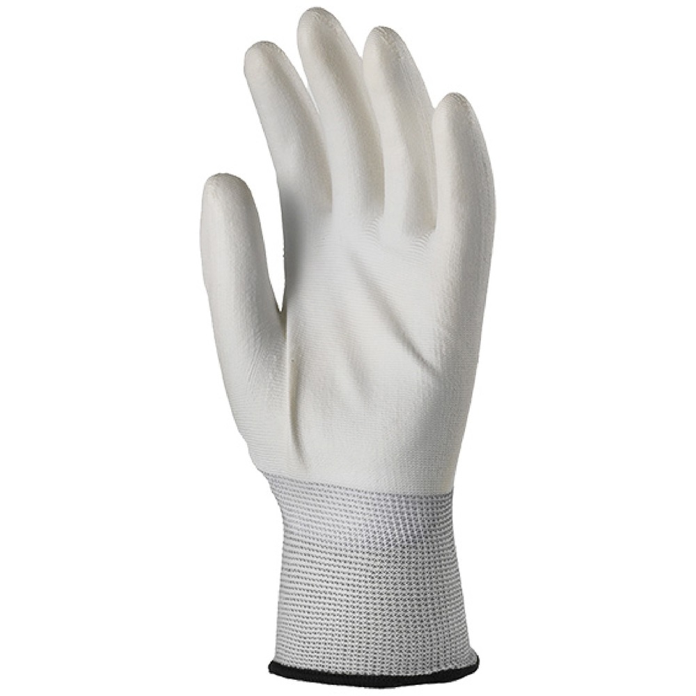 Kötött, rugalmas, nagy szakítószilárdságú 100% poliészter szál, Tenyéren poliuretánnal mártott, precíziós kesztyű gumírozott mandzsettával, szellőző kézháttal. Finom, 13-as kötés, extra széles mérettartomány. SZÍN: fehér, méret: 8-as, csomagolás: 100/10, EU szabvány: EN420, EN388: 4131 Katalóguskód: 47459