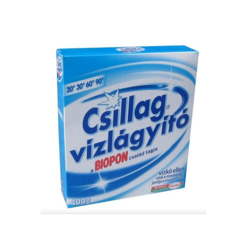 A Csillag vízlágyító védi a mosógépet, javítja a mosóhatást – Vízlágyító nélkül a mosógép fűtőcsövein és más fontos alkatrészein vízkő rakódik le, mely előbb-utóbb költséges javításokat tehet szükségessé.