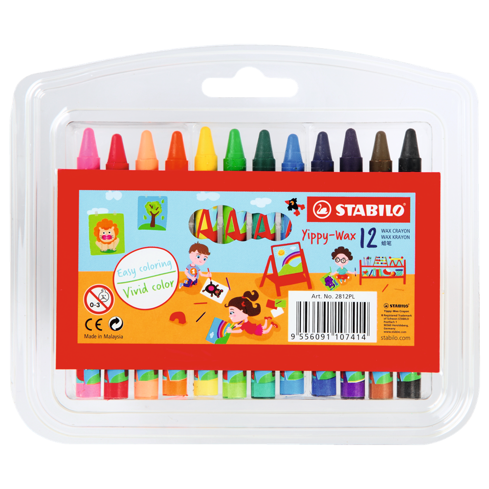 Zsírkréta készlet, Stabilo Yippy-Wax 2812PL, 12klf. szín